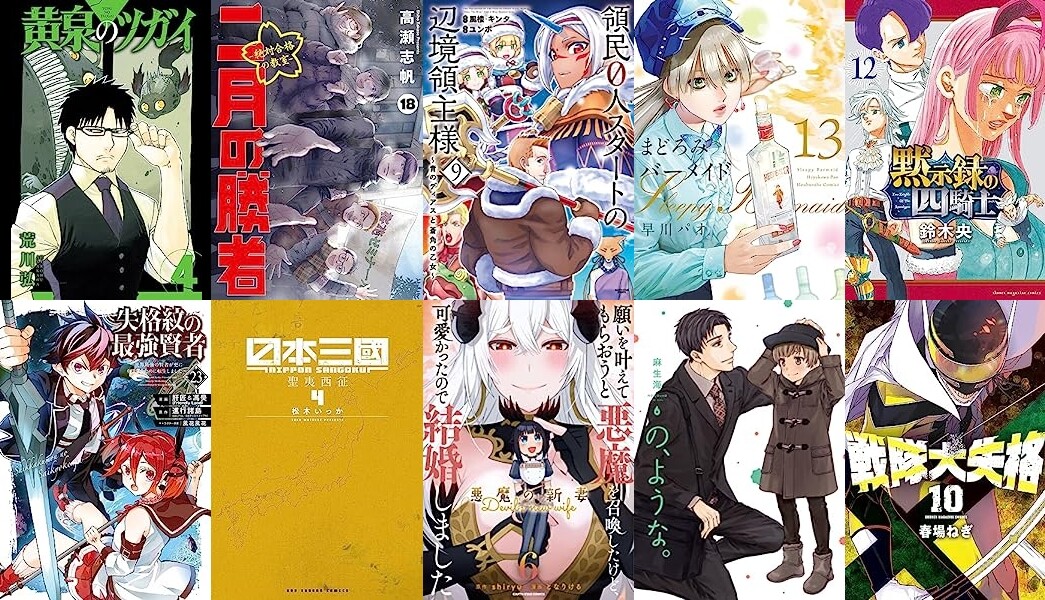 また小学館「よふかしのうた(16)」「二月の勝者 ー絶対合格の教室ー(18)」「トニカクカワイイ(24)」「日本三國(4)」「君は放課後インソムニア(13)」「MAJOR 2nd(メジャーセカンド)(26)」「龍と苺(12)」「異世界失格(9)」など、アース・スター「領民0人スタートの辺境領主様 9」「願いを叶えてもらおうと悪魔を召喚したけど、可愛かったので結婚しました 6」「ヘルモード 6」など、芳文社「まどろみバーメイド 13巻」「の、ような。 6巻」「三十路病の唄 6巻」など発売。