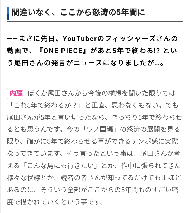 【うわぁ】内藤編集「ワンピースは来年完結します」←コレwwwwwww【ワンピース】 2023/6/12 ジャンプ速報 " " 1: それでも動く名無し 2023/06/04(日) 03:27:14.48 ID:VXu+ZC4M0 2019年の5年後だから 来年の2024年に完結するということや 続きを読む Source: ジャンプ速報