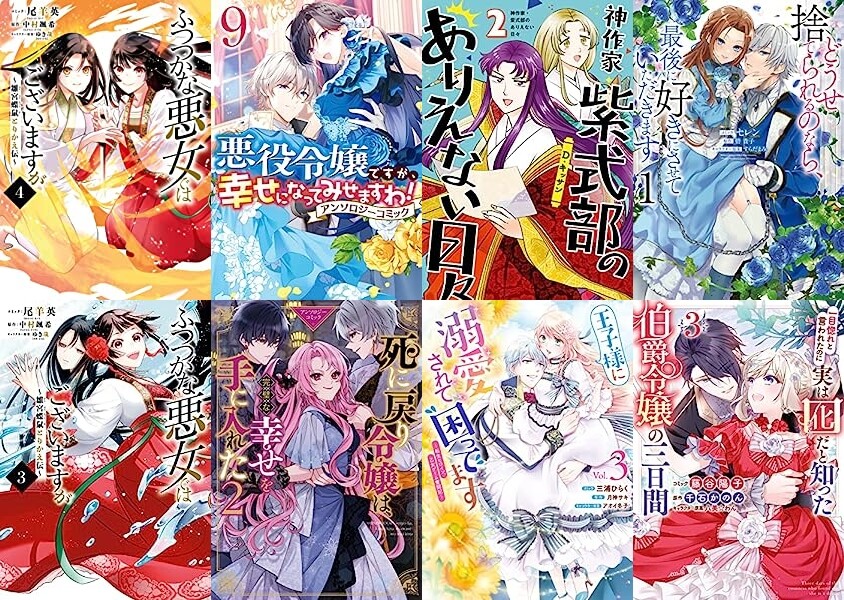 こちらでは、ZERO-SUMコミックスをまとめました。宮中で引き起こされる入れ替え物語「ふつつかな悪女ではございますが」は全4巻が対象のほか、「悪役令嬢ですが、幸せになってみせますわ! アンソロジーコミック」「神作家・紫式部のありえない日々」「どうせ捨てられるのなら、最後に好きにさせていただきます」「