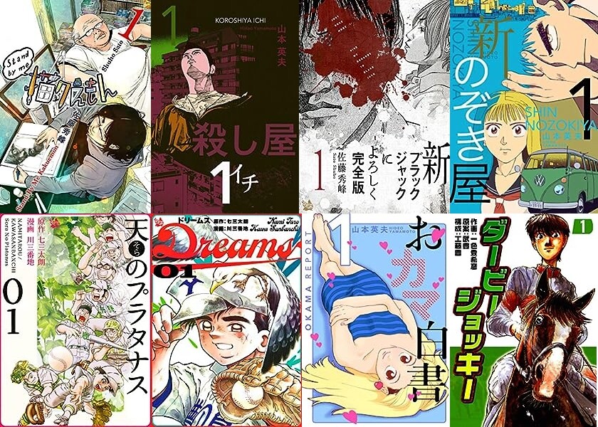 多数の作品が、全巻それぞれ33円となっています。「Stand by me 描クえもん」「殺し屋1(イチ)」「新ブラックジャックによろしく 完全版」「海猿 完全版」「新のぞき屋」「天のプラタナス」「Dreams」「風光る」「4P田中くん」「おカマ白書」「ダービージョッキー」など対象です。