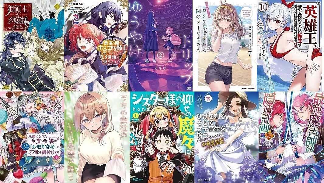 マンガではKADOKAWA「狼領主のお嬢様 6」「見捨てられた生贄令嬢は専用スキル『お取り寄せ』で邪竜を餌付けする 1」など、ホビージャパン「黒の賢者は影を織る2」「悪友の俺がポンコツ騎士を見てられないんだが、どう世話を焼きゃいい? ~まどめ外伝~2」「異界心理士の正気度と意見2」など、LINEコミックス「異世界のんびり素材採取生活 3巻」、ナンバーナイン「原作版 左ききのエレン(31):パンドラの空洞」「ごくごく普通の夫婦の話(3)」「うちの会社の小さい先輩の話【同人版】(5)」「毒蛇転生(8)」、芳文社「ゆうやけトリップ 2巻」など、主婦と生活社「婚約破棄された令嬢を拾った俺が、イケナイことを教え込む 7」など、TOブックス「ポンコツ王太子のモブ姉王女らしいけど、悪役令嬢が可哀想なので助けようと思います 第2巻」「元公爵令嬢の就職@COMIC 第6巻」など発売。