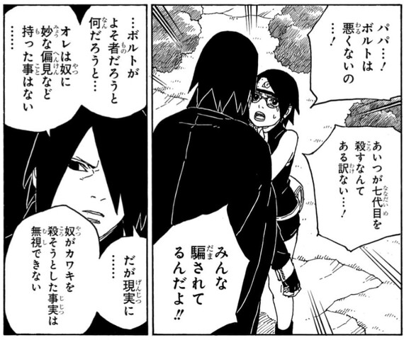 (えっ…こんなに必死になって庇うとかもしかしてボルトの事好きだったのか…?サラダはカワキと良い感じに見えたんだが…)みたいな事思ったりしたのだろうか