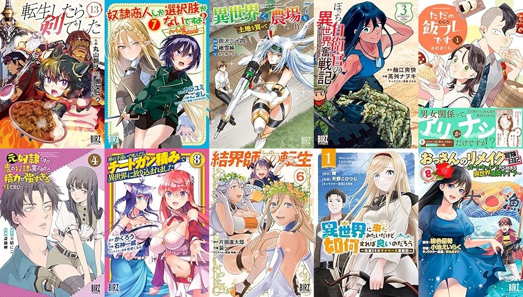 アニメ化がされた「転生したら剣でした」のほか、「奴隷商人しか選択肢がないですよ?」「異世界で土地を買って農場を作ろう」「ぼっち自衛官の異世界奮戦記」「ただの飯フレです」「元奴隷ですが、鬼の奴隷を買ってみたら精力が強すぎるので捨てたい……」「神の手違いで死んだらチートガン積みで異世界に放り込まれました」「結界師への転生」「異世界に来たみたいだけど如何すれば良いのだろう」「おっさんのリメイク冒険日記」「精霊達の楽園と理想の異世界生活」「詰んでる元悪役令嬢はドS王子様から逃げ出したい」などなど。