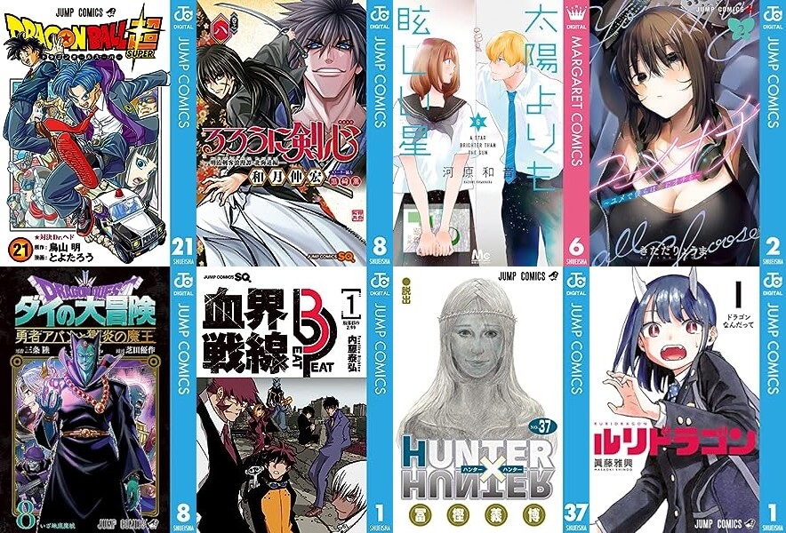 「ドラゴンボール超」「るろうに剣心―明治剣客浪漫譚・北海道編―」「ドラゴンクエスト ダイの大冒険 勇者アバンと獄炎の魔王」「血界戦線 Beat 3 Peat」「HUNTER×HUNTER モノクロ版」「【推しの子】1stイラスト集 Glare×Sparkle」「太陽よりも眩しい星」「鴨乃橋ロンの禁断推理」「ルリドラゴン」などなど。