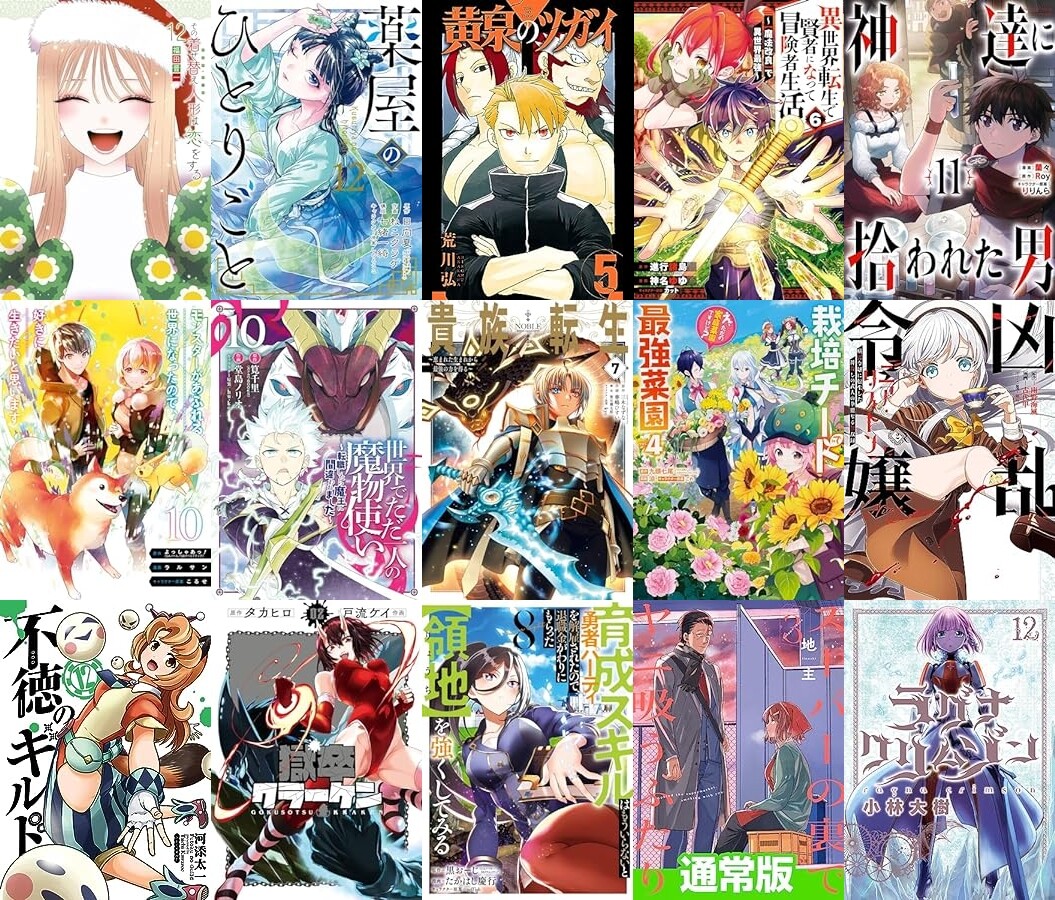 アニメ化「その着せ替え人形は恋をする」「薬屋のひとりごと」に、荒川弘さん最新作「黄泉のツガイ」、ほか「異世界転生で賢者になって冒険者生活」「神達に拾われた男」「モンスターがあふれる世界になったので、好きに生きたいと思います」「世界でただ一人の魔物使い」「栽培チートで最強菜園」「難攻不落の魔王城へようこそ」「凶乱令嬢ニア・リストン」「聖女のはずが、どうやら乗っ取られました」「貴族転生」「育成スキルはもういらないと勇者パーティを解雇されたので、退職金がわりにもらった【領地】を強くしてみる」「不徳のギルド」「獄卒クラーケン」「エリスの聖杯」「スーパーの裏でヤニ吸うふたり」「兄の嫁と暮らしています。」「最強タンクの迷宮攻略」「月刊少女野崎くん」などなど。