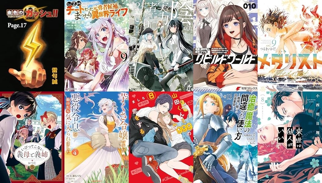 雷句誠さん「金色のガッシュ!! 2【単話版】 Page 17」、一迅社「いびってこない義母と義姉: 5」、オーバーラップ「Lv2からチートだった元勇者候補のまったり異世界ライフ 9」「芋くさ令嬢ですが悪役令息を助けたら気に入られました 4」、KADOKAWA「陰の実力者になりたくて! (12)」「山田くんとLv999の恋をする(8)」「リビルドワールド 10」「治癒魔法の間違った使い方 ~戦場を駆ける回復要員~(13)」「異世界食堂 洋食のねこや(5)」「リアデイルの大地にて 6」「異世界はスマートフォンとともに。 (14)」「HGに恋するふたり(7)」など対象。