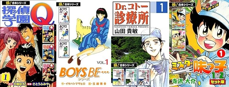 単行本複数巻がまとまった極!合本シリーズ。週刊少年マガジンなどで連載されていた懐かしの作品がセールになっています!「探偵学園Q」「BOYS BE…シリーズ」「Dr.コトー診療所」「山田貴敏セレクション」「ミスター味っ子」「冒険してもいい頃」「探偵犬シャードック」「女帝&女帝花舞」などなど。