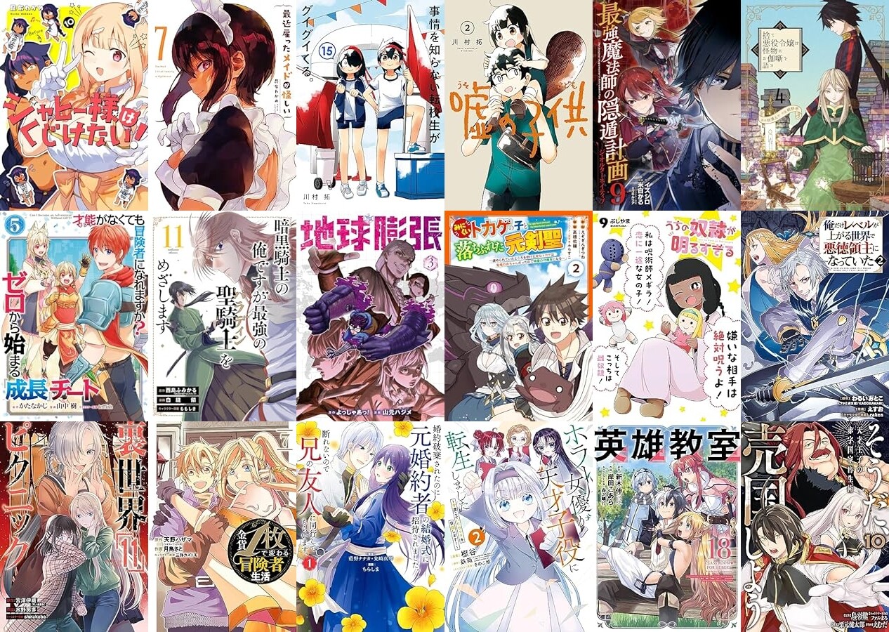 こちらでは、「ジャヒー様はくじけない! 」「最近雇ったメイドが怪しい」「事情を知らない転校生がグイグイくる。」「嘘の子供」「最強魔法師の隠遁計画-ジ・オルターネイティブ-」「捨て悪役令嬢は怪物にお伽噺を語る」「俺だけレベルが上がる世界で悪徳領主になっていた」「裏世界ピクニック」「金貨1枚で変わる冒険者生活」「そうだ、売国しよう」「うちの奴隷が明るすぎる」