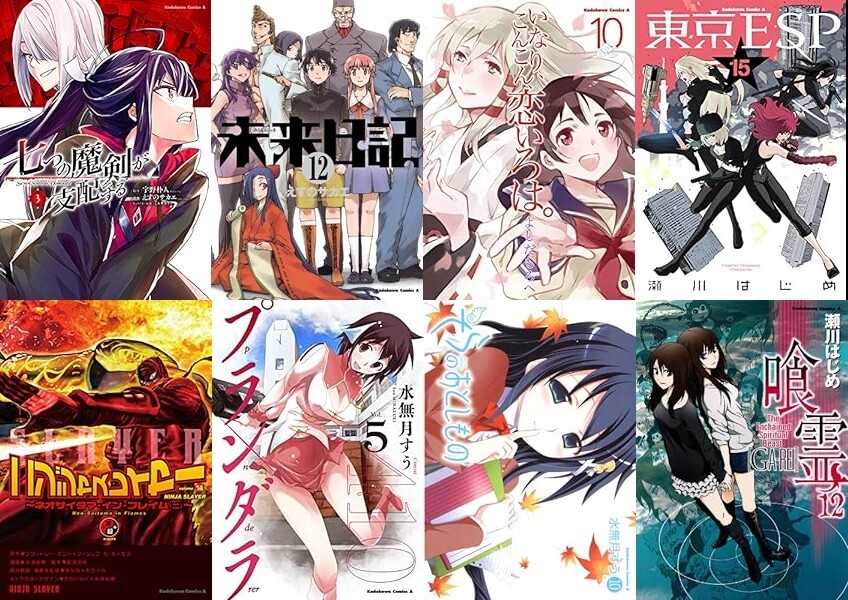 レジェンド作品、そしてルーキー作品のいくつかが33円。「七つの魔剣が支配する」「未来日記」「いなり、こんこん、恋いろは。」「東京ESP」「ニンジャスレイヤー」「プランダラ」「そらのおとしもの」「喰霊」「ブラッドラッド」などなど。