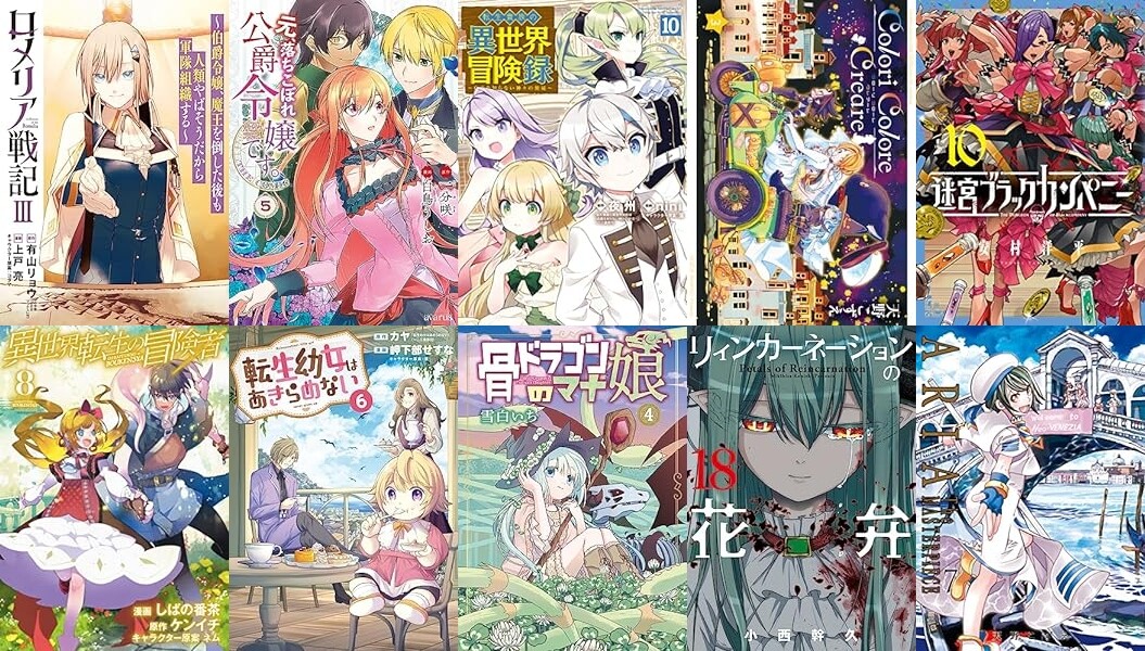 こちらでは、対象のマッグガーデンコミックスをまとめました。「ロメリア戦記」「元、落ちこぼれ公爵令嬢です。」「転生貴族の異世界冒険録」「Colori Colore Creare」「ARIA完全版 [ARIA The MASTERPIECE]」「あまんちゅ!」「迷宮ブラックカンパニー」「異世界転生の冒険者」「転生幼女はあきらめない」「骨ドラゴンのマナ娘」「リィンカーネーションの花弁」などなど。
