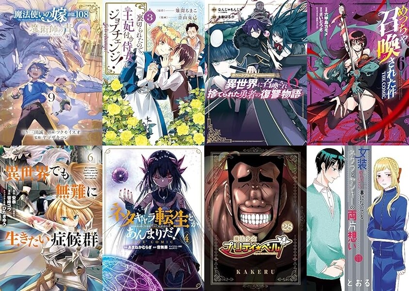 「魔法使いの嫁 詩篇.108 魔術師の青」「裏切られたので、王妃付き侍女にジョブチェンジ!」「ガベージブレイブ 異世界に召喚され捨てられた勇者の復讐物語」「めっちゃ召喚された件」「異世界でも無難に生きたい症候群」「ネタキャラ転生とかあんまりだ!」「魔法少女プリティ☆ベル」「女装してめんどくさい事になってるネクラとヤンキーの両片想い」「河畔の街のセリーヌ」「転生した悪役令嬢は復讐を望まない」「魔導の系譜」などなど。