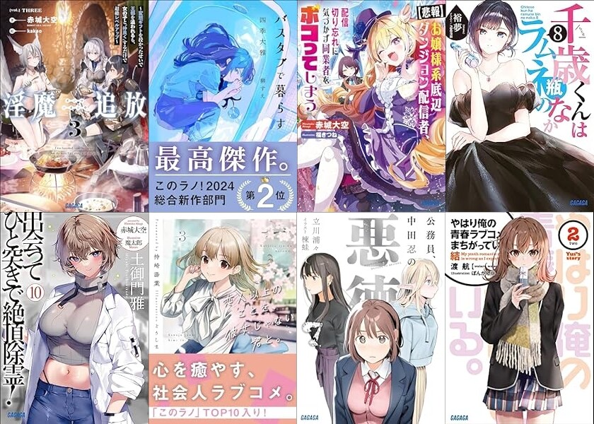 主にライトノベル、ガガガ文庫がセールとなっています。「淫魔追放」「バスタブで暮らす」「【悲報】お嬢様系底辺ダンジョン配信者、配信切り忘れに気づかず同業者をボコってしまう」「千歳くんはラムネ瓶のなか」「出会ってひと突きで絶頂除霊!」「恋人以上のことを、彼女じゃない君と。」「公務員、中田忍の悪徳」「やはり俺の青春ラブコメはまちがっている。結」「グリッドマン ユニバース」「僕を成り上がらせようとする最強女師匠たちが育成方針を巡って修羅場」など対象です。
