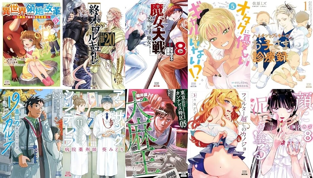 1月に新刊発売「異世界領地改革~土魔法で始める公共事業~」が予約中ながら54%ポイント還元に、「終末のワルキューレ」は最新20巻が53%ポイント還元で既刊も40~54%ポイント還元に。また「魔女大戦 32人の異才の魔女は殺し合う」「オタクに優しいギャルはいない!?」「ハネチンとブッキーのお子さま診療録」「19番目のカルテ 徳重晃の問診」「アンサングシンデレラ 病院薬剤師 葵みどり」などもほぼ全巻セールです。