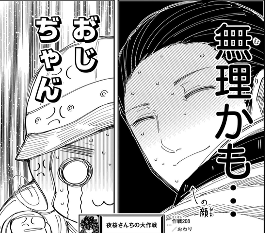 【夜桜さんちの大作戦】208話、マジギレ二刃 2023/12/26 ねいろ速報さん " " 名前:ねいろ速報 おじちゃんでもマジギレ二刃は無理なんだ… 【夜桜さんちの大作戦】権平ひつじ 集英社 名前:ねいろ速報 1 やっぱりおじちゃん面白すぎるな… 名前:ねいろ速報 2 まあでも限界超えるならおじちゃんでも無理ぐらいじゃないと… 続きを読む Source: ねいろ速報さん