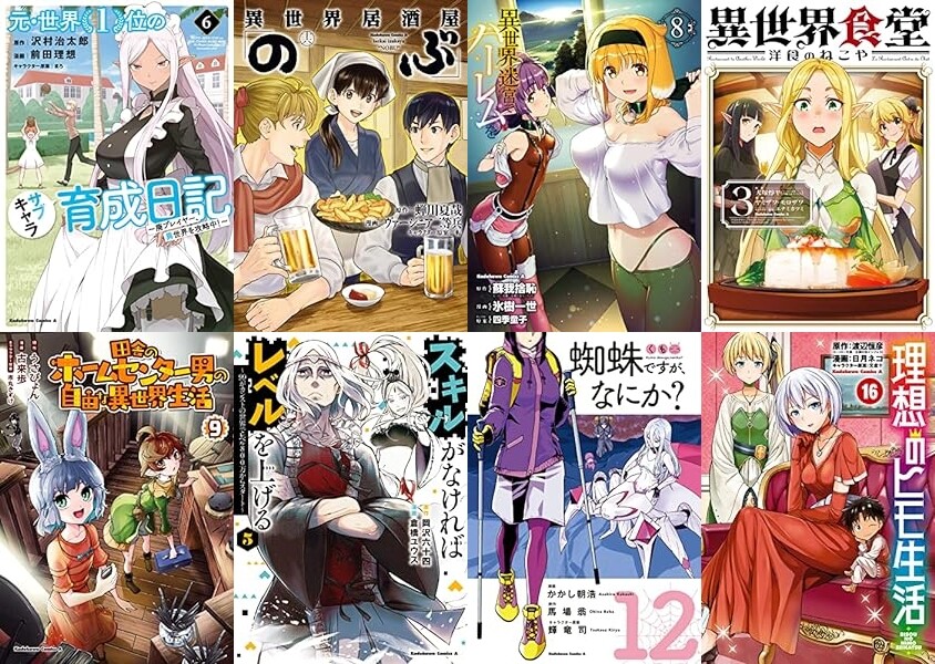 「元・世界1位のサブキャラ育成日記」「異世界居酒屋『のぶ』」「異世界迷宮でハーレムを」「異世界食堂 洋食のねこや」「田舎のホームセンター男の自由な異世界生活」「スキルがなければレベルを上げる」「蜘蛛ですが、なにか?」「理想のヒモ生活」「Dジェネシス ダンジョンが出来て3年」「回復術士のやり直し」「主人公じゃない!」「オーバーロード」「ヘテロゲニア リンギスティコ」など対象。主に1巻が110円、2巻以降が50%OFFになっているものが多いです。