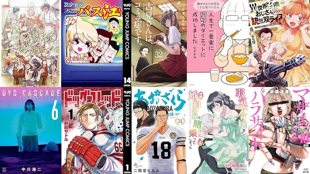 講談社「不滅のあなたへ(21)」「DYS CASCADE(6)」「笑顔のたえない職場です。(9)」「黙示録の四騎士(15)」「ゴリせん(7)」など、集英社「スナックバス江 14」「ドッグスレッド 1」「ザシス 2」「転生ゴブリンだけど質問ある? 9」「エルフ奴隷と築くダンジョンハーレム―異世界で寝取って仲間を増やします― 2」「バトゥーキ 17」など発売。