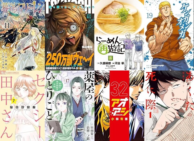 アニメ化で話題「葬送のフリーレン」「薬屋のひとりごと~猫猫の後宮謎解き手帳~」のほか、格闘マンガ「TSUYOSHI 誰も勝てない、アイツには」「ケンガンオメガ」、そして「らーめん再遊記」「アオアシ」「セクシー田中さん」「あくたの死に際」「獣王と薬草」「宗像教授世界篇」などもセールです。