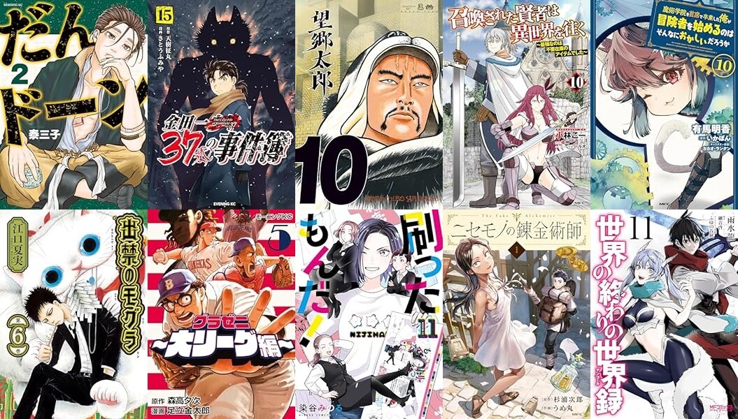 講談社「だんドーン(2)」「金田一37歳の事件簿(15)」「出禁のモグラ(6)」「グラゼニ~大リーグ編~(5)」「望郷太郎(10)」「刷ったもんだ!(11)」「バトルスタディーズ(39)」「マタギガンナー(6)」「ボールパークでつかまえて!(12)」「恋じゃねえから(4)」など発売。