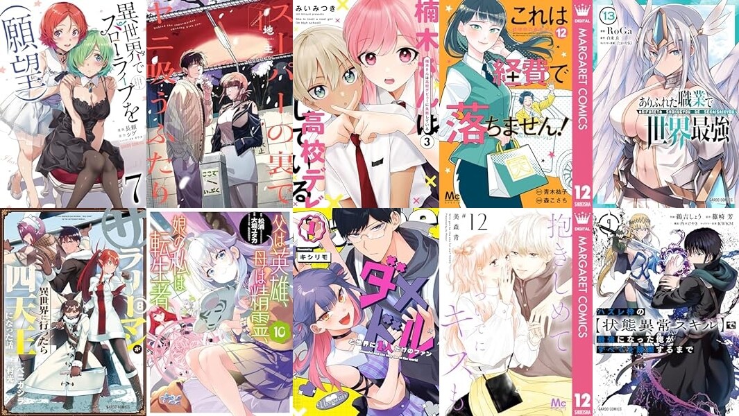 スクウェア・エニックス「スーパーの裏でヤニ吸うふたり 4巻」「父は英雄、母は精霊、娘の私は転生者。 10巻」など、GANMA!「ダメドルと世界に1人だけのファン(1)」、集英社「これは経費で落ちません! ~経理部の森若さん~ 12」「抱きしめて ついでにキスも 12」「モーメント 永遠の一瞬 20」「Re:blue 3」など、一迅社「不遇だった私は愛が重い旦那様から甘く淫らに溺愛される コミックアンソロジー」「楠木さんは高校デビューに失敗している: 3」など発売です。