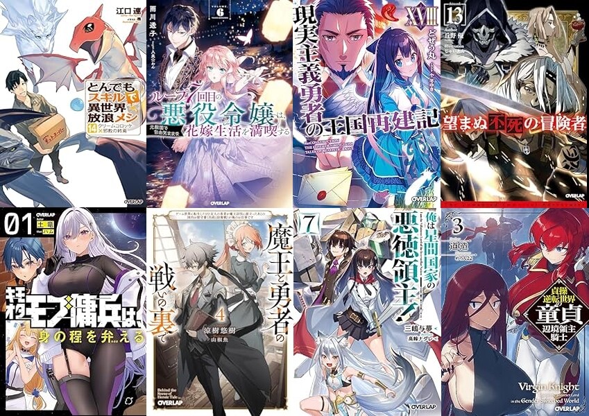 「とんでもスキルで異世界放浪メシ」「ループ7回目の悪役令嬢は、元敵国で自由気ままな花嫁生活を満喫する」「現実主義勇者の王国再建記」「望まぬ不死の冒険者」「キモオタモブ傭兵は、身の程を弁(わきま)える」「魔王と勇者の戦いの裏で」「俺は星間国家の悪徳領主!」「貞操逆転世界の童貞辺境領主騎士」「一生働きたくない俺が、クラスメイトの大人気アイドルに懐かれたら」などなど。