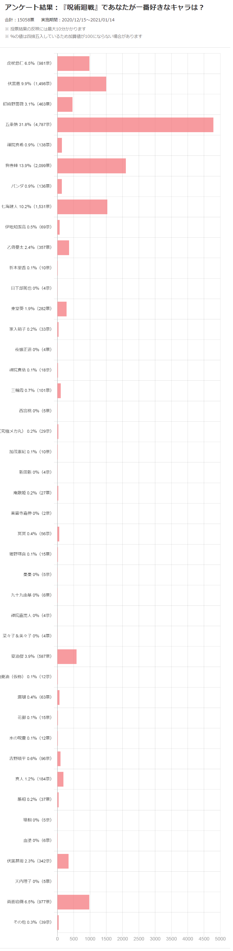 五条人気ってことはやっぱ強いキャラが人気なんやな