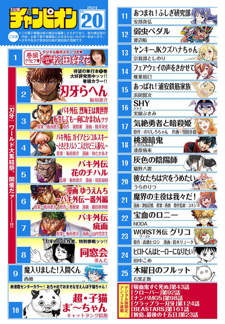 チャンピオンって今でも刃牙頼みの雑誌だったの 2024/4/19 ねいろ速報さん " " 名前:ねいろ速報 チャンピオンって今でも刃牙頼みの雑誌だったの!? 名前:ねいろ速報 1 ペダルの方が売れてるよ 名前:ねいろ速報 2 >>1 でも累計だと刃牙の方が4倍くらい売れてるし… 続きを読む Source: ねいろ速報さん