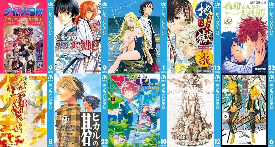 「ドラゴンクエスト ダイの大冒険 勇者アバンと獄炎の魔王」「るろうに剣心―明治剣客浪漫譚・北海道編―」「DEATH NOTE モノクロ版」「地獄楽」「夜桜さんちの大作戦」「ファイアパンチ」「ヒカルの碁」「トリコ モノクロ版」「サマータイムレンダ」「一ノ瀬家の大罪」「株式会社マジルミエ」「ショーハショーテン!」「生者の行進」「暗殺教室」「ダークギャザリング」「暗号学園のいろは」「ラーメン赤猫」「I”s」などなど。