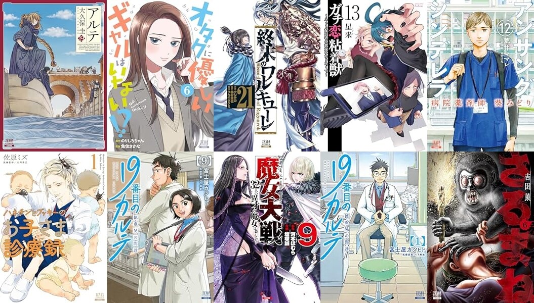 4月19日発売の新刊もセールとなっています!「アルテ」「アンサングシンデレラ 病院薬剤師 葵みどり」「19番目のカルテ 徳重晃の問診」「終末のワルキューレ」「さるまね」など対象です。対象作品は少ないですが、今後増えていく…かもしれません。「オタクに優しいギャルはいない!?」「ガチ恋粘着獣」「魔女大戦 32人の異才の魔女は殺し合う」などセール対象作品が増えました。