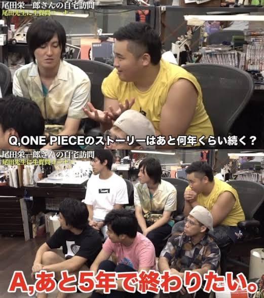 【話題】2019年の尾田栄一郎「ワンピースはあと5年で終わりたい」【ワンピース】 2024/5/6 ジャンプ速報 " " 1: 以下、5ちゃんねるからVIPがお送りします 2019年にあと5年で終わるって言って今年がその5年目 なんだが終わると思うか? 続きを読む Source: ジャンプ速報