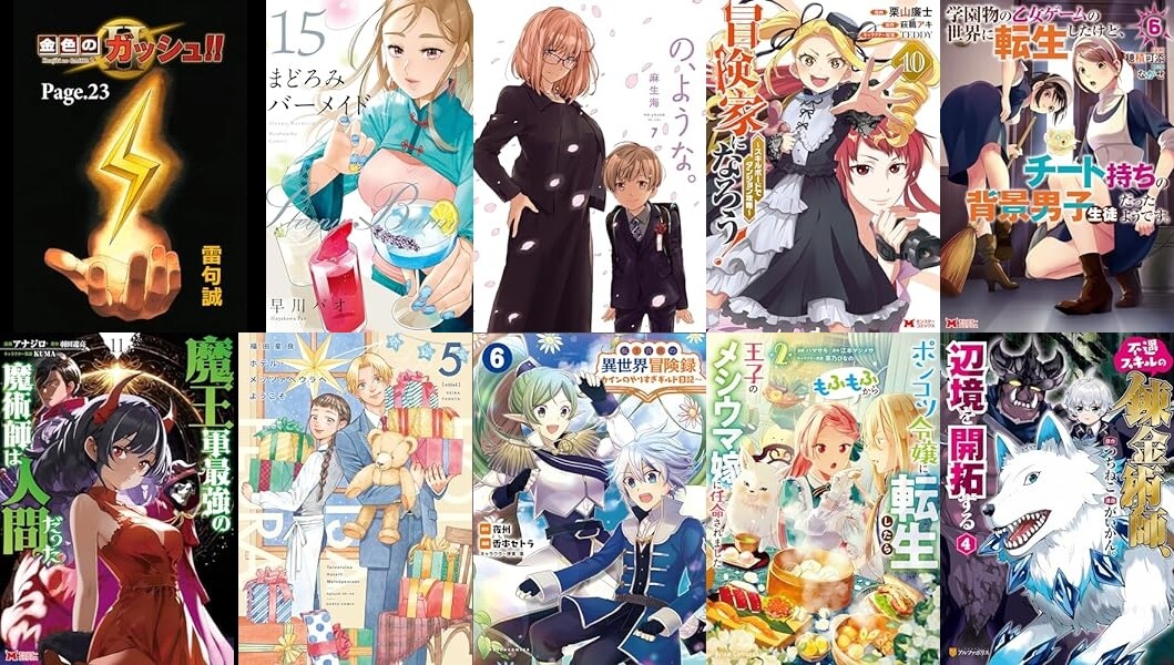 双葉社「冒険家になろう!10」「学園物の乙女ゲームの世界に転生したけど、チート持ちの背景男子生徒だったようです。6」「魔王軍最強の魔術師は人間だった11」「おいてけぼりの錬金術師3」「勇者パーティーを追放されたので、魔王を取り返しがつかないほど強く育ててみた3」など、KADOKAWA「ホテル・メッツァペウラへようこそ 5巻」「家族全員でいじめと戦うということ。」「恋と呼ぶには青すぎる 3」など発売。