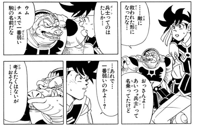 【ダイの大冒険】クロコダイン「チェスで一番弱いコマの名前だな」 2024/6/16 ねいろ速報さん " " 名前: ねいろ速報 おっさんチェスわかるんだな… 【ダイの大冒険】監修:堀井雄二、原作:三条陸、作画:稲田浩司 集英社 名前:ねいろ速報 1 頭悪いのに… 名前:ねいろ速報 2 おっさんが血気盛んなのは最初期だけでそれ以降はかなりチームプレイや頭脳プレイをする方だと思うけど 続きを読む Source: ねいろ速報さん