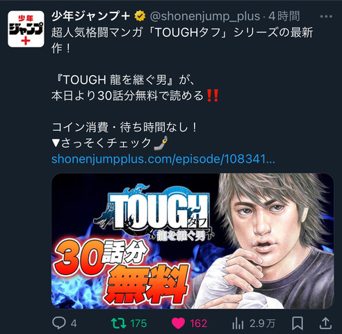 【TOUGH 龍を継ぐ男】30話分無料 2024/6/19 ねいろ速報さん " " 名前:ねいろ速報 超人気格闘漫画が今だけ無料! 急げっ乗り遅れるなっ 30話無料・ラッシュだっ 名前:ねいろ速報 1 この顔変だよ猿先生 名前:ねいろ速報 4 既にキー坊に3年殺しされていたあたりまで読める 続きを読む Source: ねいろ速報さん