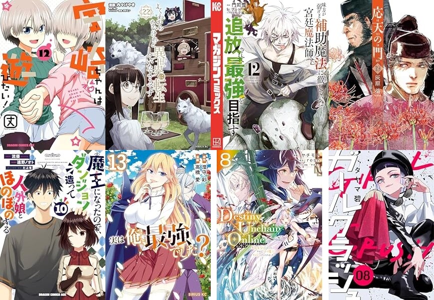 また講談社からは40冊以上、「よくわからないけれど異世界に転生していたようです(22)」「味方が弱すぎて補助魔法に徹していた宮廷魔法師、追放されて最強を目指す(12)」「実は俺、最強でした?(13)」「Destiny Unchain Online(8)」「地元のいじめっ子達に仕返ししようとしたら、別の戦いが始まった。(4)」「ブレス(5)」「薫る花は凛と咲く(13)」「十字架のろくにん(16)」「オフ会したらとんでもないやつが来た話(5)」「さわらないで小手指くん(9)」「異世界ウォーキング(7)」「幼馴染とはラブコメにならない(11)」「魔女と傭兵(2)」など発売。