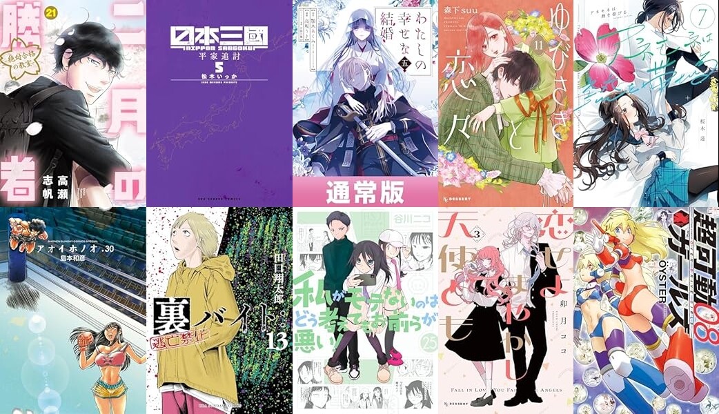 小学館「二月の勝者 ー絶対合格の教室ー(21)」「アオイホノオ(30)」「日本三國(5)」「裏バイト:逃亡禁止(13)」「僕が死ぬだけの百物語(8)」「暗殺後宮~暗殺女官・花鈴はゆったり生きたい~(6)」「薩摩転生~世に万葉の丸十字が咲くなり~(2」など発売。