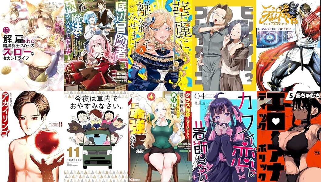 講談社「解雇された暗黒兵士(30代)のスローなセカンドライフ(13)」「アカイリンゴ(8)」「底辺冒険者だけど魔法を極めてみることにした(6)」「今夜は車内でおやすみなさい。(11)」「転生貴族の万能開拓(9)」「大怪獣ゲァーチマ(3)」「異世界帰りの大賢者様はそれでもこっそり暮らしているつもりです(8)」など、アルファポリス「華麗に離縁してみせますわ!3」「とある小さな村のチートな鍛冶屋さん3」など発売。