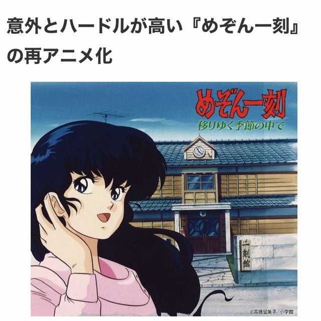『めぞん一刻』の再アニメ化は難しい? 2024/7/20 ねいろ速報さん " " 名前:ねいろ速報 昭和のノリって今見るとやっぱどうしてもキツイんだろうな… >『めぞん一刻』の再アニメ化は難しい? 「昭和」描写と「令和」のギャップ https://magmix.jp/post/242765 [] 名前:ねいろ速報 1 最近のシティハンターもまあ結構アレだったな… 名前:ねいろ速報 3 >>1 もっこりとかやっぱり危険なんだろうか 続きを読む Source: ねいろ速報さん