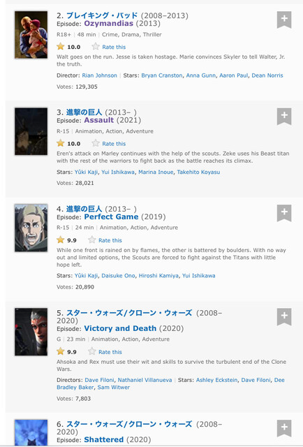 ちなみに1位は超大型をアルミンの犠牲によって倒した話のやつ