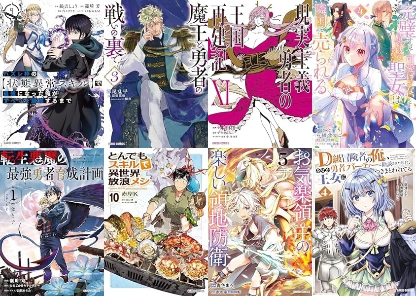 アニメ化「ハズレ枠の【状態異常スキル】で最強になった俺がすべてを蹂躙するまで」のほか、「魔王と勇者の戦いの裏で」「現実主義勇者の王国再建記」「完璧すぎて可愛げがないと婚約破棄された聖女は隣国に売られる」「転生悪魔の最強勇者育成計画」「とんでもスキルで異世界放浪メシ」「お気楽領主の楽しい領地防衛」「D級冒険者の俺、なぜか勇者パーティーに勧誘されたあげく、王女につきまとわれてる」「貞操逆転世界の童貞辺境領主騎士」などなど。
