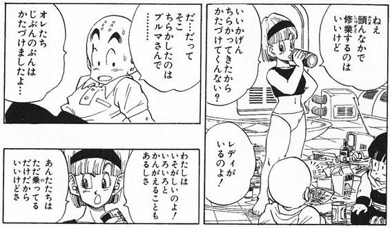 ブルマってクリリンを男としてみてないの? 2024/9/23 ねいろ速報さん " " 名前:ねいろ速報 この時のブルマって丸出しで恥ずかしくなかったのかな? それともチビハゲを男として全く意識してなかったって事? 『ドラゴンボール』鳥山明 集英社 名前:ねいろ速報 1 俺にはよくわからないがたまにこういう女いるらしい 名前:ねいろ速報 3 チビハゲも全く意識してなさそうだし良いんじゃないの 続きを読む Source: ねいろ速報さん