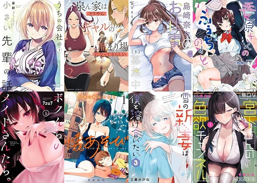 また「どうやらボクの花嫁は女騎士団なようで。」「島崎奈々@お仕事募集中」「香原さんのふぇちのーと」「ボクんちのメイドさんたち。」「健全美少女はシゴきたい!!」「友達の姉ちゃんと懐あそび」「雪の新妻は僕と溶け合いたい」「彼女召喚しました!?」「おんなのこのまゆ 昭和式メイド閑話抄」
