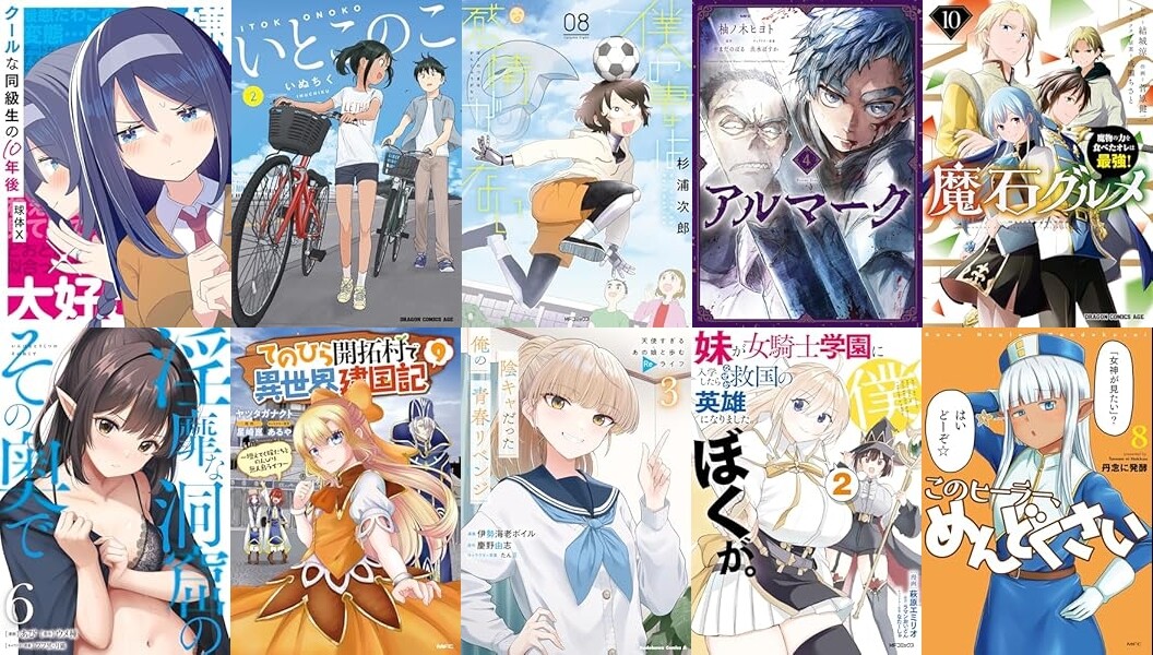 「いとこのこ」「アルマーク」「魔石グルメ」「淫靡な洞窟のその奥で」「てのひら開拓村で異世界建国記」「陰キャだった俺の青春リベンジ」「妹が女騎士学園に入学したらなぜか救国の英雄になりました。ぼくが。」「このヒーラー、めんどくさい」「嫌われ皇子のやりなおし」「手札が多めのビクトリア」「悪役令嬢に転生失敗して勝ちヒロインになってしまいました」「ケイヤクシマイ」など、60作品以上をまとめました。