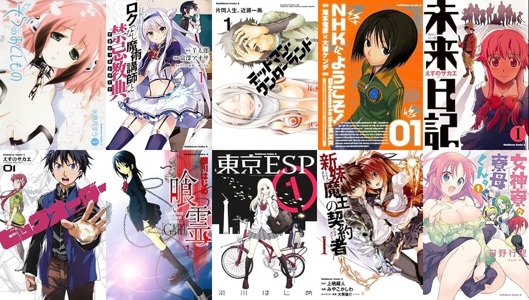 アニメ化がされた「そらのおとしもの」「ロクでなし魔術講師と禁忌教典」「デッドマン・ワンダーランド」「NHKにようこそ!」「未来日記」「喰霊」「新妹魔王の契約者」などなど。