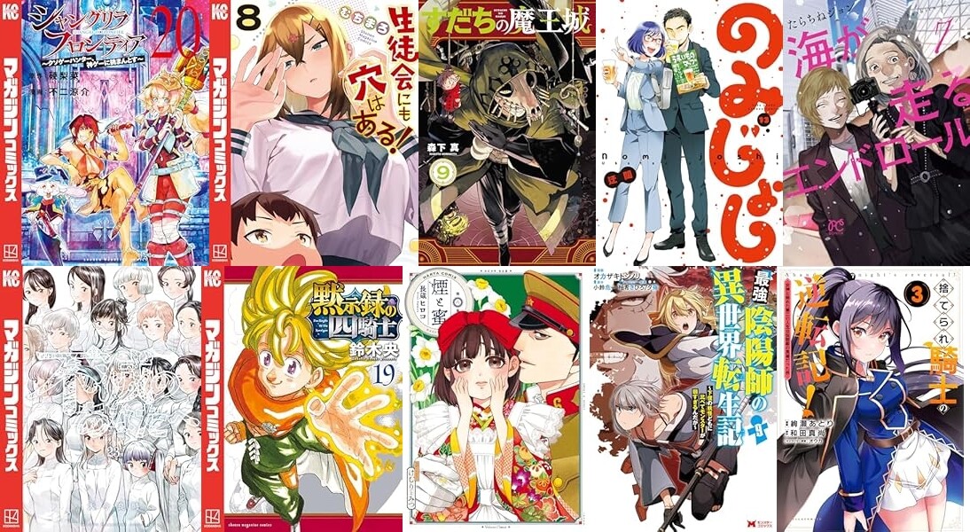 マンガでは講談社「シャングリラ・フロンティア(20)」「生徒会にも穴はある!(8)」「すだちの魔王城(9)」「不滅のあなたへ(23)」「黙示録の四騎士(19)」「ブルーロック-EPISODE 凪-(6)」「カナン様はあくまでチョロい(8)」「カッコウの許嫁(25)」「灰仭巫覡(2)」「真夜中ハートチューン(6)」など、竹書房「のみじょし(13)」「鬼桐さんの洗濯【特典ペーパー付き】 (7) 」など発売。