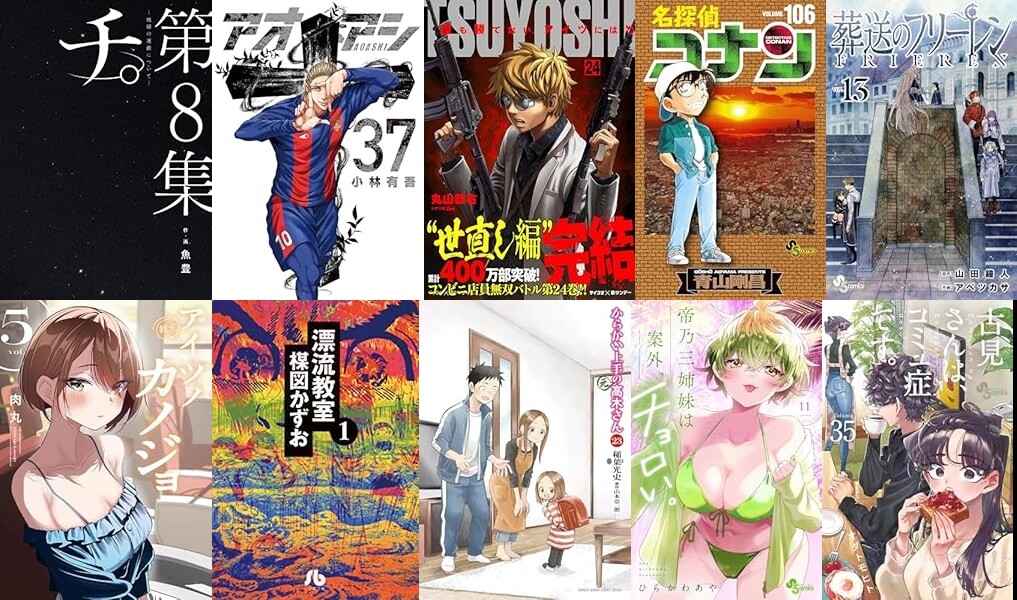 「名探偵コナン」「アオアシ」「TSUYOSHI 誰も勝てない、アイツには」「帝乃三姉妹は案外、チョロい。」「葬送のフリーレン」「古見さんは、コミュ症です。」「MAJOR 2nd(メジャーセカンド)」「アイツノカノジョ」「漂流教室〔文庫版〕」などもセールとなっています。
