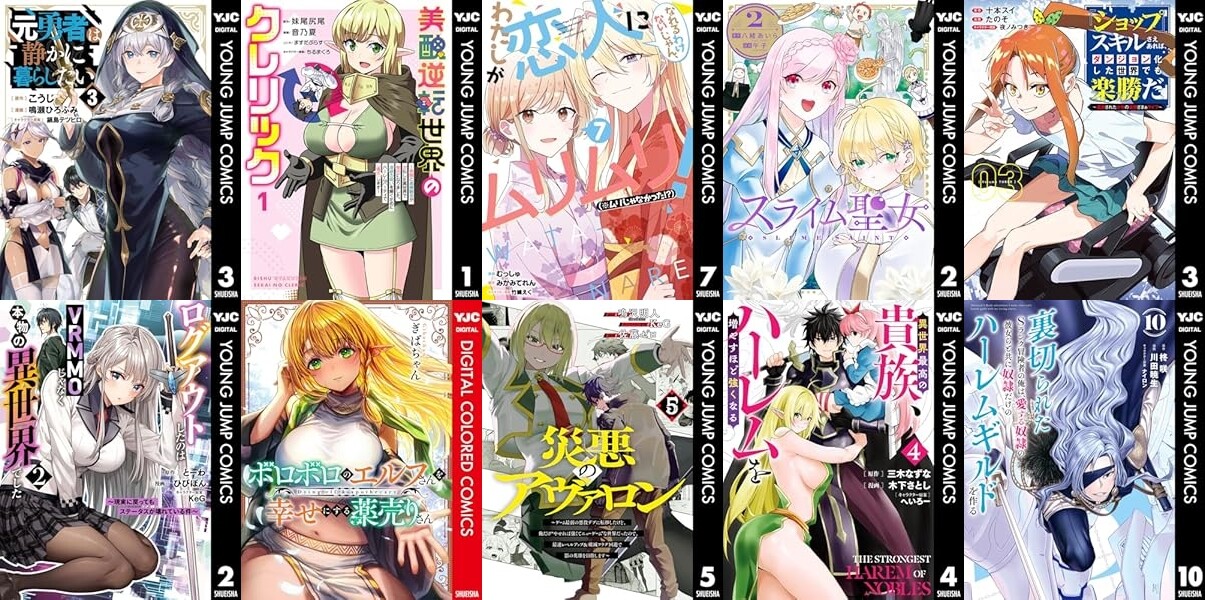 「元勇者は静かに暮らしたい」「美醜逆転世界のクレリック」「わたしが恋人になれるわけないじゃん、ムリムリ!(※ムリじゃなかった!?)」「スライム聖女」「『ショップ』スキルさえあれば、ダンジョン化した世界でも楽勝だ」「ログアウトしたのはVRMMOじゃなく本物の異世界でした」「ボロボロのエルフさんを幸せにする薬売りさん カラー版」「災悪のアヴァロン」「異世界最高の貴族、ハーレムを増やすほど強くなる」「世界に一人、全属性魔法の使い手」「裏切られたSランク冒険者の俺は、愛する奴隷の彼女らと共に奴隷だけのハーレムギルドを作る」「救世主《メシア》」「ギルド追放された雑用係の下剋上」「俺だけ不遇スキルの異世界召喚叛逆記」