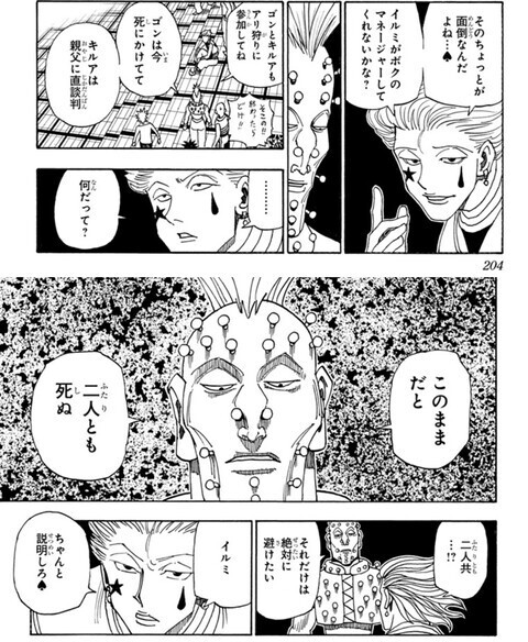 【ハンターハンター】友人とサシで話す時のヒソカ 2024/11/23 ねいろ速報さん " " 名前:ねいろ速報 いつもこんな感じのノリだとしたらボノヒソカって雰囲気は割と完成度高いエミュだったのではないだろうか 【ハンターハンター】冨樫義博 集英社 名前:ねいろ速報 1 左下のコマ格好いいけどマジでセリフも表情もヒソカらしくないよな 名前:ねいろ速報 2 ギタラクル結構気に入ってるんだなイルミ 続きを読む Source: ねいろ速報さん