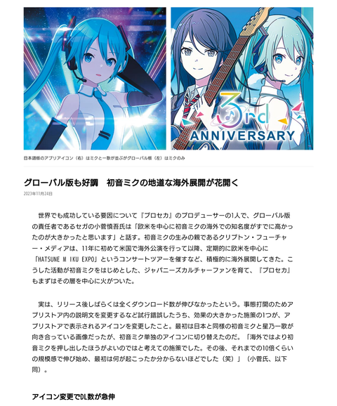 初音ミク海外でも人気だった 2024/12/16 ねいろ速報さん " " 名前:ねいろ速報 GAIJINは初音ミクが好き 名前:ねいろ速報 1 日本人も好きだが? 名前:ねいろ速報 2 10倍は景気がよすぎるだろ 続きを読む Source: ねいろ速報さん