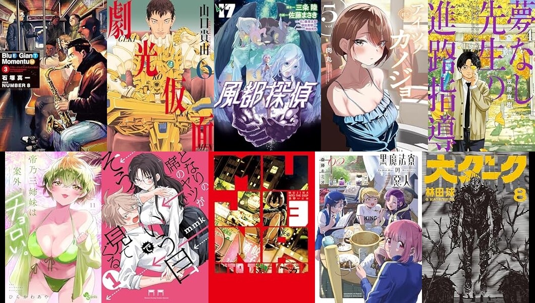 2024年11月までに発売された作品が対象の模様。「BLUE GIANT MOMENTUM」「劇光仮面」「風都探偵」「アイツノカノジョ」「夢なし先生の進路指導」「帝乃三姉妹は案外、チョロい。」「となりの席のヤツがそういう目で見てくる」「MUJINA INTO THE DEEP」「黒魔法寮の三悪人」「大ダーク」「セクシー田中さん」など対象です。