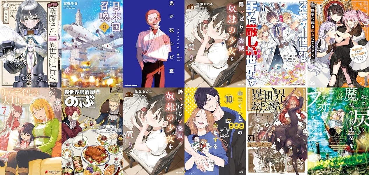 「便利屋斎藤さん、異世界に行く」「リアデイルの大地にて」「日本国召喚」「異世界居酒屋『のぶ』」「光が死んだ夏」など、11月新刊「酔っぱらい盗賊、奴隷の少女を買う」「山田くんとLv999の恋をする」「役立たずスキルに人生を注ぎ込み25年、今さら最強の冒険譚」「乙女ゲー世界はモブに厳しい世界です」など、ほかにも「異世界おじさん」「歴史に残る悪女になるぞ」なども最新巻がセールです。
