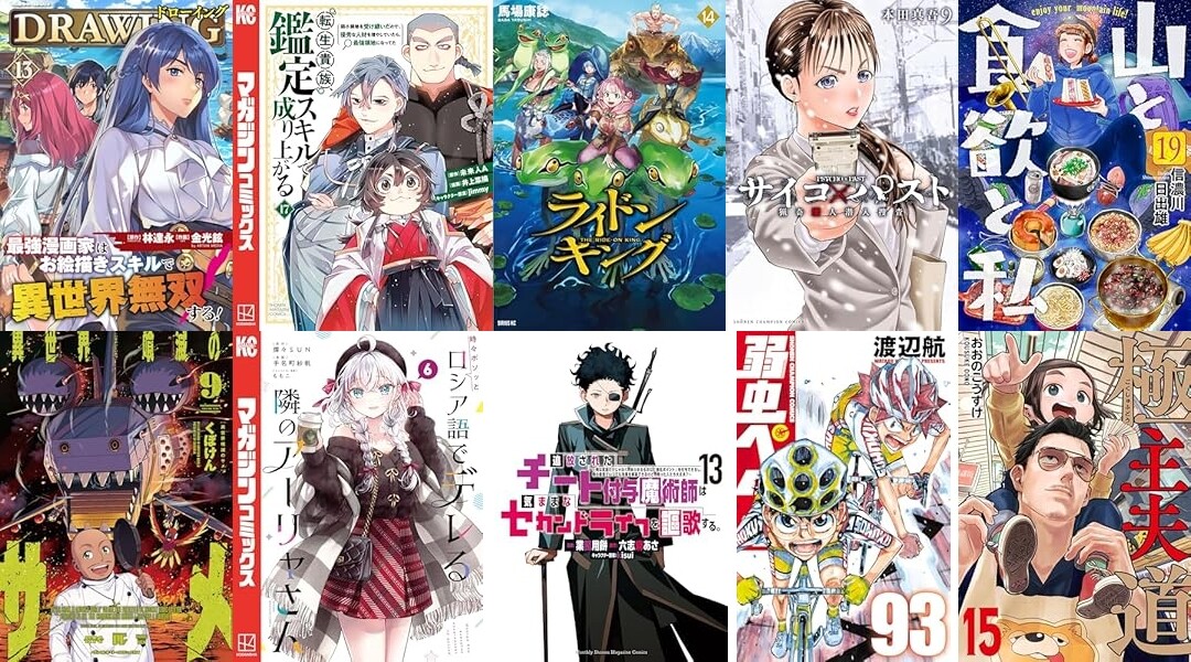 秋田書店「サイコ×パスト 猟奇殺人潜入捜査 9」「弱虫ペダル 93」「弱虫ペダル SPARE BIKE 14」「不死と罰 7」など、新潮社「山と食欲と私 19巻」「極主夫道 15巻」「沖縄で好きになった子が方言すぎてツラすぎる 9巻」「今日から始める幼なじみ 12巻」「間違った子を魔法少女にしてしまった 13巻」「サバエとヤッたら終わる 17巻」など発売です。